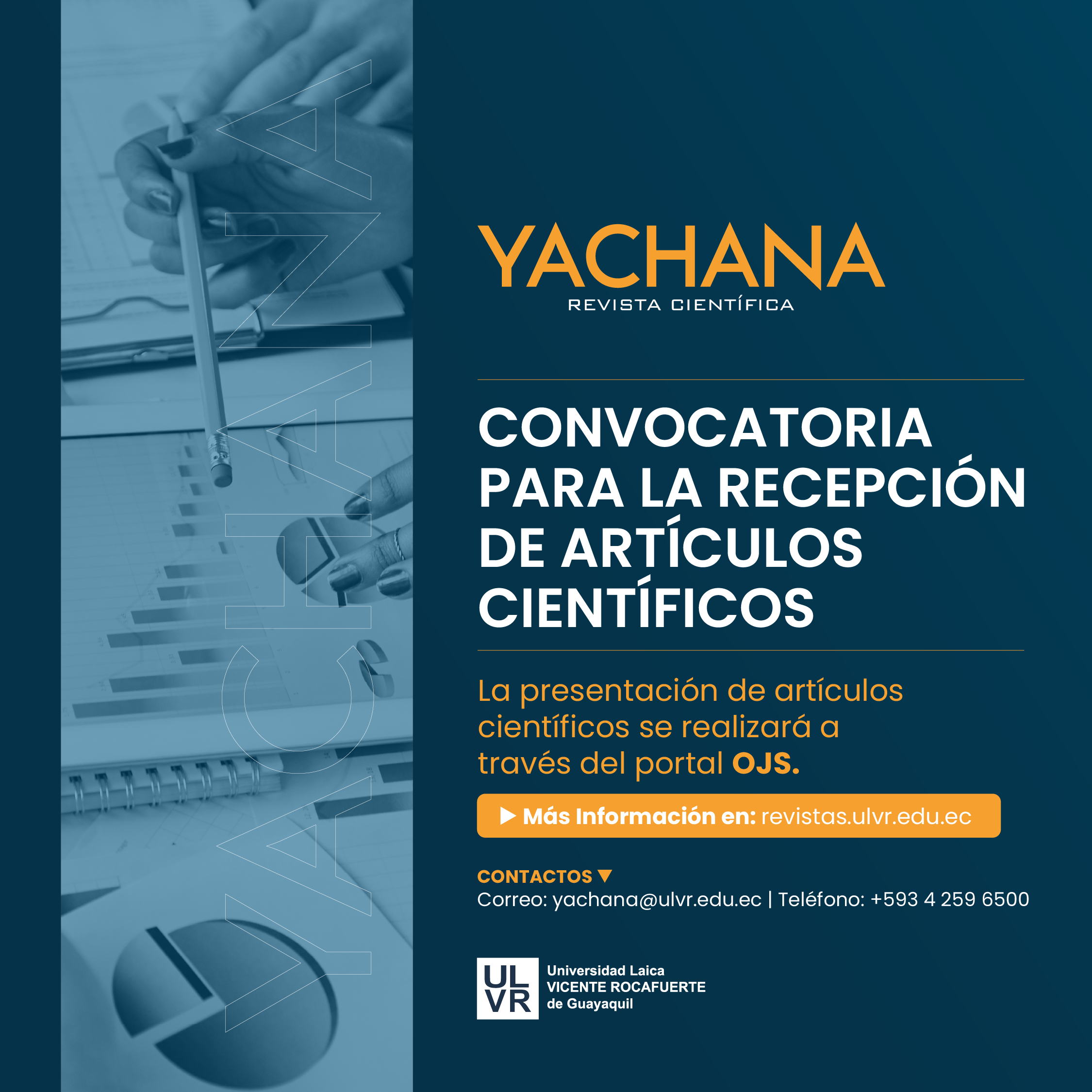 El envío de las propuestas se realizará SOLAMENTE a través del OJS de la revista http://revistas.ulvr.edu.ec/index.php/yachana